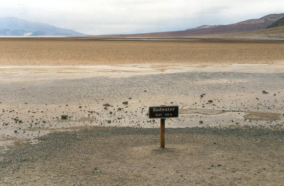Badwater mit 85m unter dem Meeresspiegel tiefste Stelle der USA / Blick auf NN