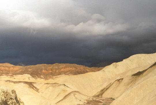 Golden Trail (Death Valley) / Dark clouds over golden sand