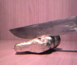 den kopf bitte mit einem einzigen schnellen schnitt abtrennen.